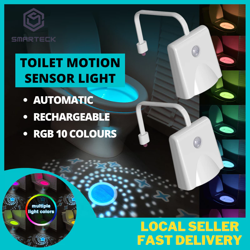 SMARTECK Toilette Nachtlicht Bewegungssensor RGB 10 Farben USB Wiederaufladbar Wasserdicht Toilettenschüssel Sitz
