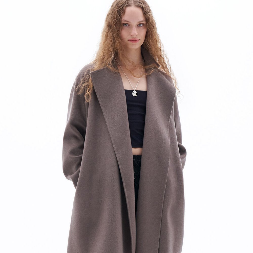 Oversized wrap jacket in double-faced brushed wool and cashmere, with hand-stitched edges. Designed with an oversized fit.